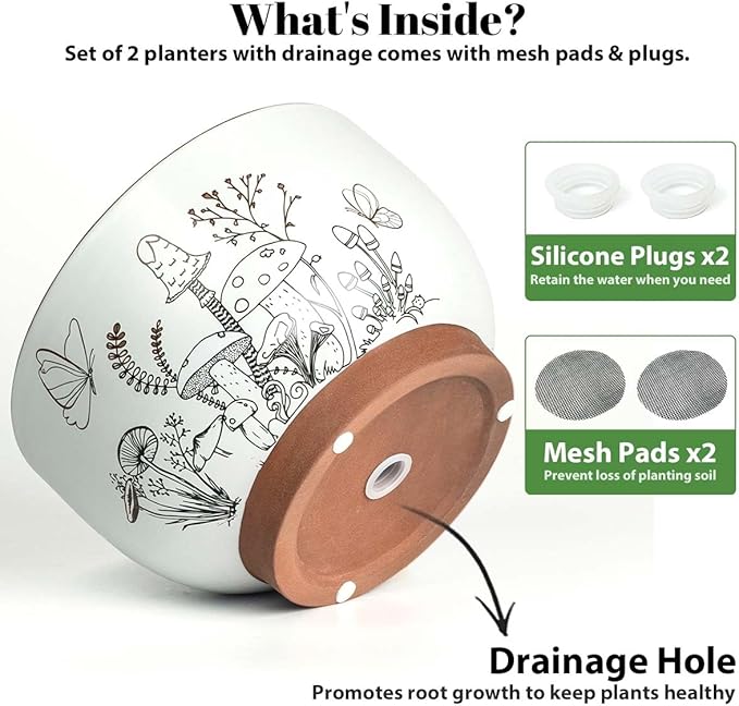 - 【Fun Style Design】Our plant pots feature feature whimsical mushroom and butterfly designs and neutral colors for a fresh, natural aesthetic. They blend seamlessly with any interior style, adding a playful, natural touch to any space.