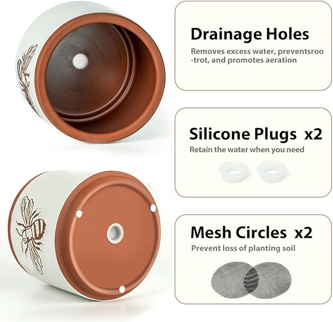 - Drainage Hole & Plug & Mesh Pad - Each planter has a drainage hole, putting the mesh pad at the bottom will isolate the water. The silicone plug could retain the water when you need it.