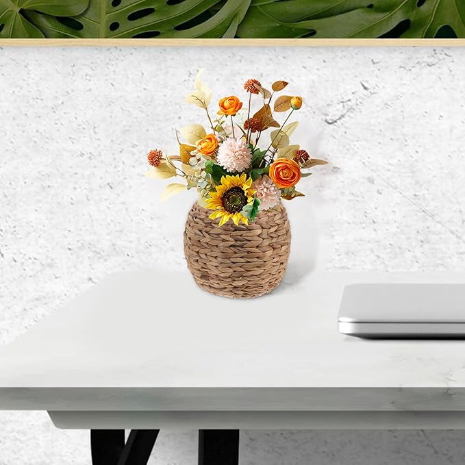 Woven Planter Basket, Seagrass Basket Planters, Hyacinth Woven Flower Pot Rattan Wicker Plant Pot, for Desktop and Home Organization